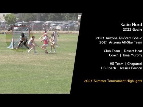 Katie Nord - 2022...Since the day I played my first game in goal, I fell in love with the position and have done everything I can to become a better athlete, teammate and increase my lacrosse IQ. I have also placed a high value on my academic success throughout my life. I am not only a member of my high school's chapter of NHS but I am also a Link Crew Leader at my high school. Additionally, I have participated in the Biomedical program since I was a freshman and three years in the Spanish program. Despite numerous life changes during this time, I have earned a 4.2 GPA and scored a 28 ACT, 1220 SAT, and 1290 PSAT. Off the field, I volunteer in a variety of settings including at a no-kill animal shelter, daycare for children with developmental disabilities, and the Desert Challenge. At the Desert Challenge, I volunteer while athletes from across the globe compete against each other for a chance to represent their countries at the Paralympics. Through these opportunities, I have learned more about the world around me and discovered my passion for prosthetics and the interconnectedness and advancements of the modern world.
